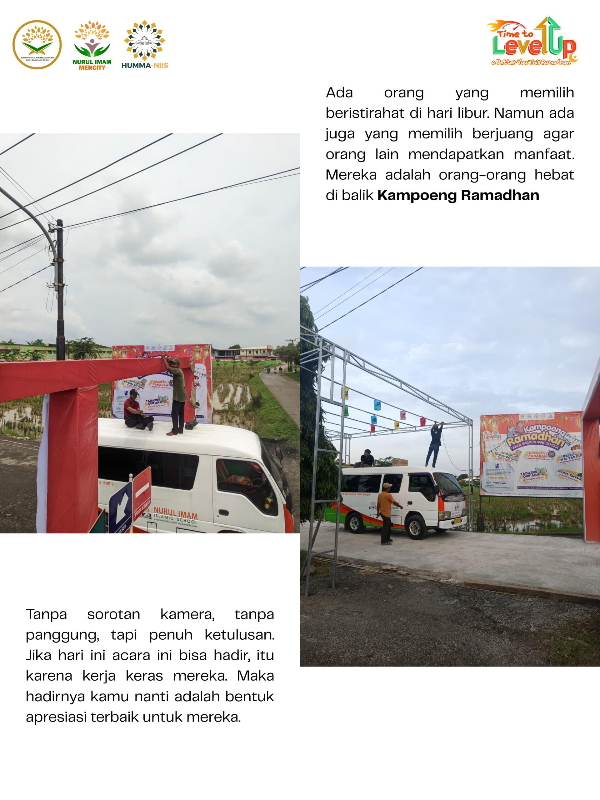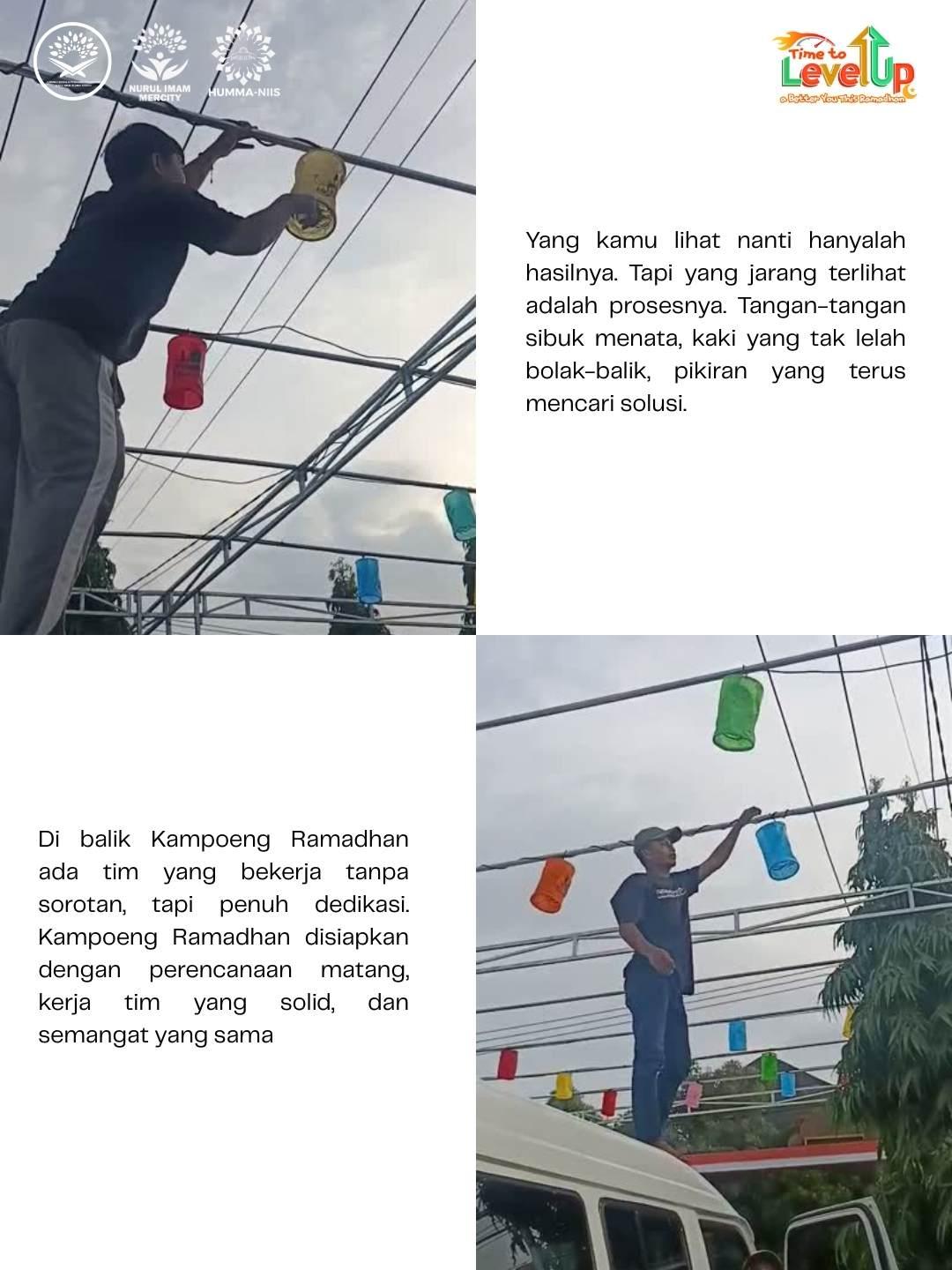 Yang kamu lihat nanti hanyalah hasilnya. Tapi yang jarang terlihat adalah prosesnya. Tangan-tangan sibuk menata, kaki yang tak lelah bolak-balik, pikiran yang terus mencari solusi. Di balik Kampoeng Ramadhan ada tim yang bekerja tanpa sorotan, tapi penuh dedikasi. Kampoeng Ramadhan disiapkan dengan perencanaan matang, kerja tim yang solid, dan semangat yang sama.